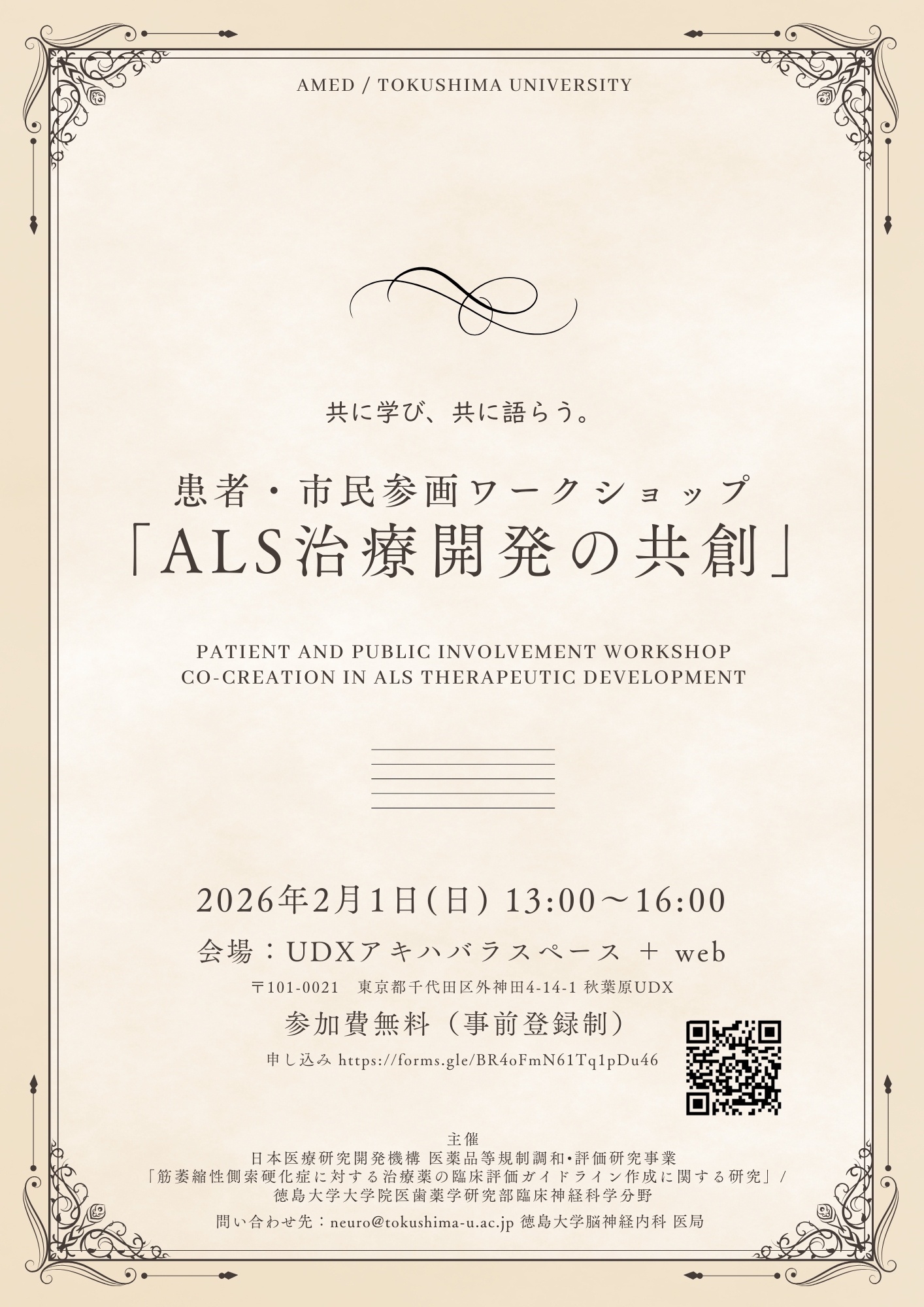 患者・市民参画ワークショップ「ALS治療開発の共創」