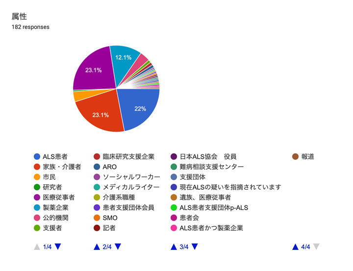 • ALSの診断を受けてから間がないですが、治療薬の開発の状況や評価方法など勉強になることが大変多かったです。今後の治験への参加含めて考える機会になりました。