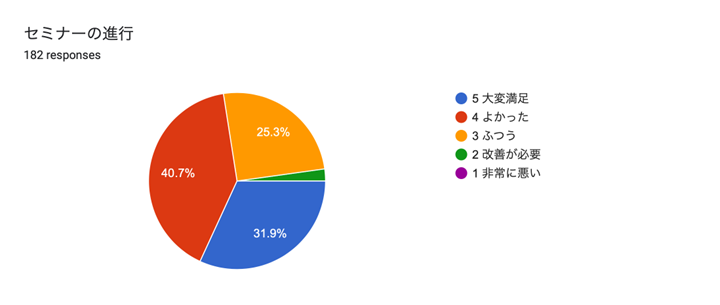 • 時間通りに進めていただいたのは良かったが、質問時間が短いと感じた。 質問の入力に時間がかかるので、もう少し工夫していただければありがたいです。
