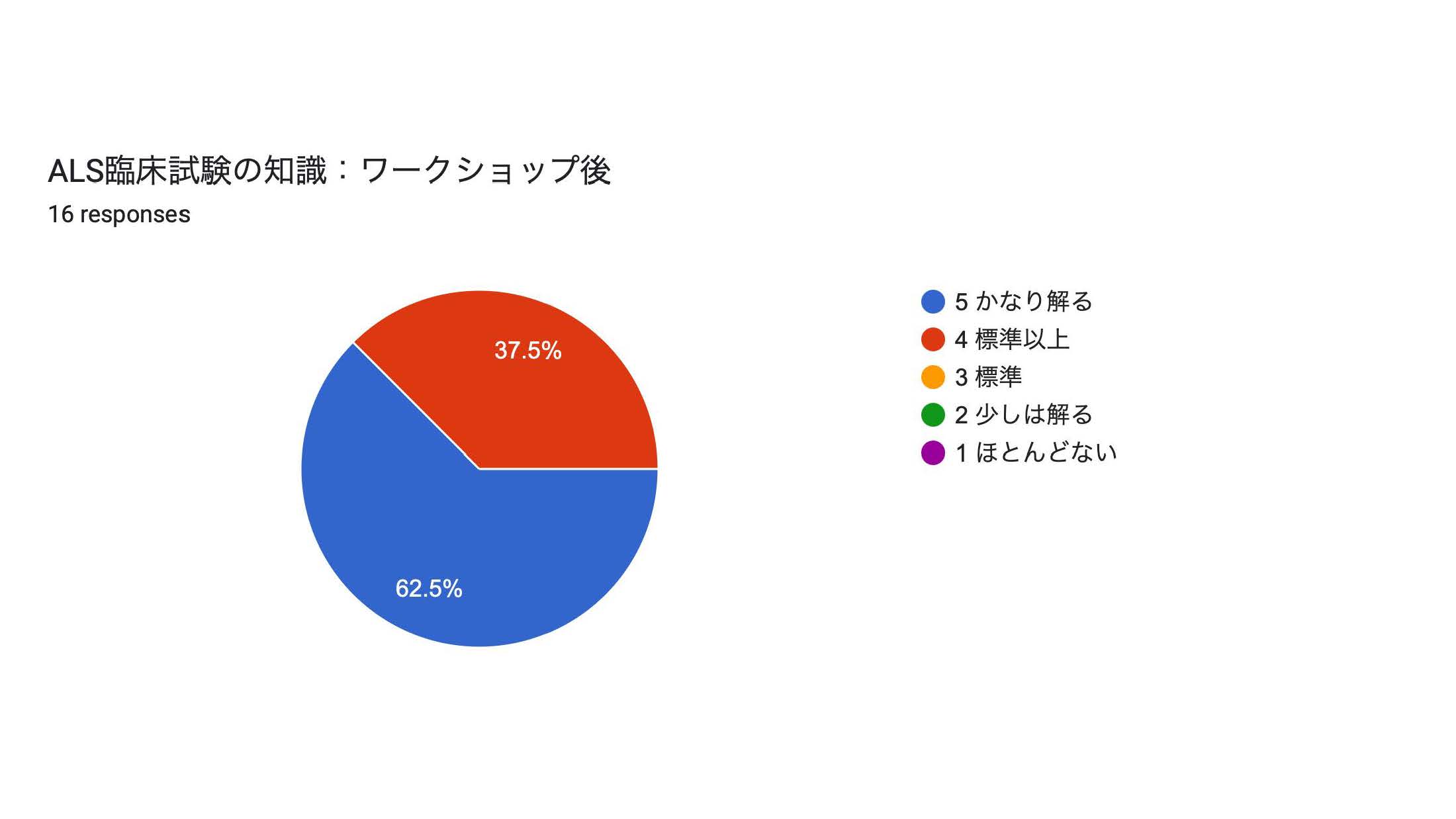 内容:今回誤解があると考えされられたのは、「二重盲検試験におけるプラセボ」について、全く聞かないわけではないことを説明してあげることも重要かと思いました。食塩水でも乳糖でも一定数の患者様には効果があり、いわゆるモルモットにされている訳ではないと。効果を証明するために必要なものであり、主治医もリスクが高ければ患者さんに勧めないと言うことをはっきり伝えることも重要かと思いました。プラセボの効果は一般的なものでALSの患者さんには同様では無いかも知れませんが・・・