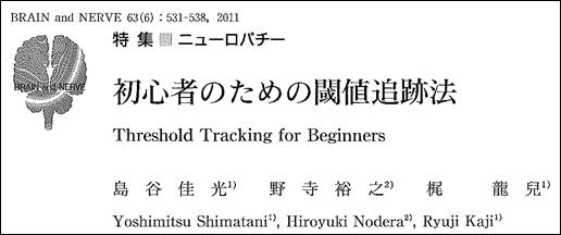 ロンドン大学のHugh Bostock教授が開発した閾値追跡法は通常の筋電図(神経伝導検査)類似ですが各種刺激電流を自動制御することで神経興奮性の評価が20分程度の検査で出来ます。神経興奮性にかかわる数種類のイオンチャネル機能もコンピュータモデルを用いることで可能なため、パッチクランプ法で動物細胞からのみ得られていた情報が無侵襲的に患者さんから記録できる画期的な方法です。