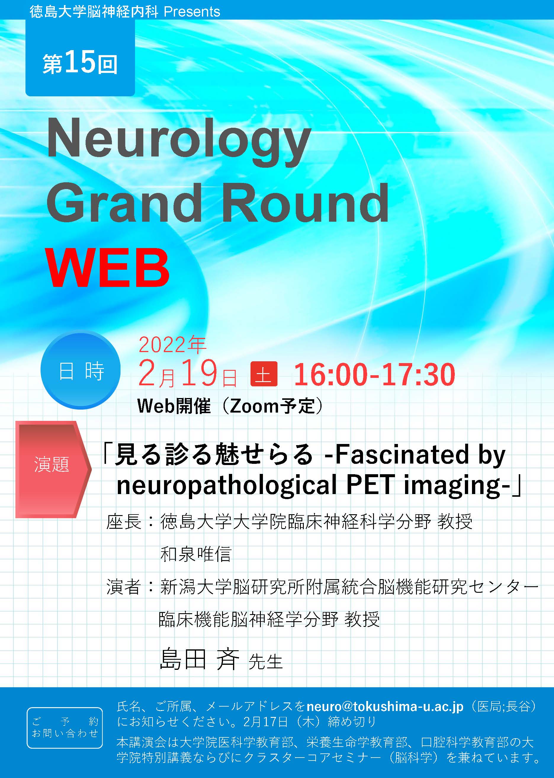 氏名、御所属、メールアドレスを neuro@tokushima-u.ac.jp (医局 長谷)にお知らせください。 2022年2月17日(木)締切。