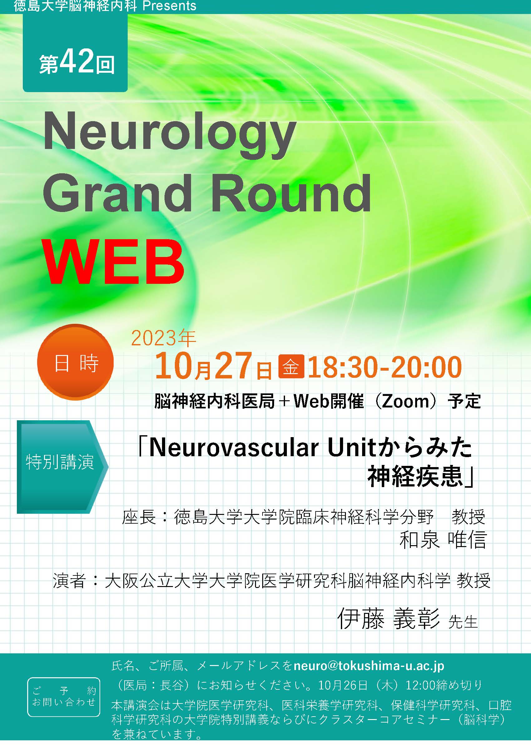 氏名、御所属、メールアドレスを neuro@tokushima-u.ac.jp (医局 長谷)にお知らせください。