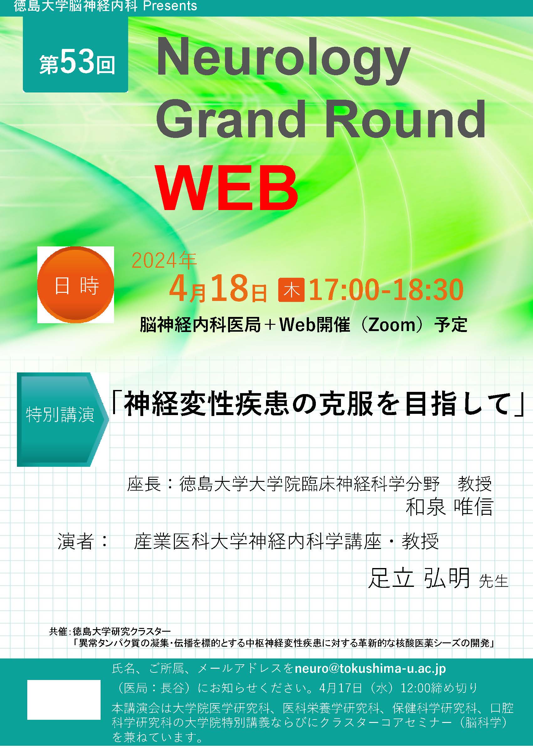 氏名、御所属、メールアドレスを neuro@tokushima-u.ac.jp (医局 長谷)にお知らせください。