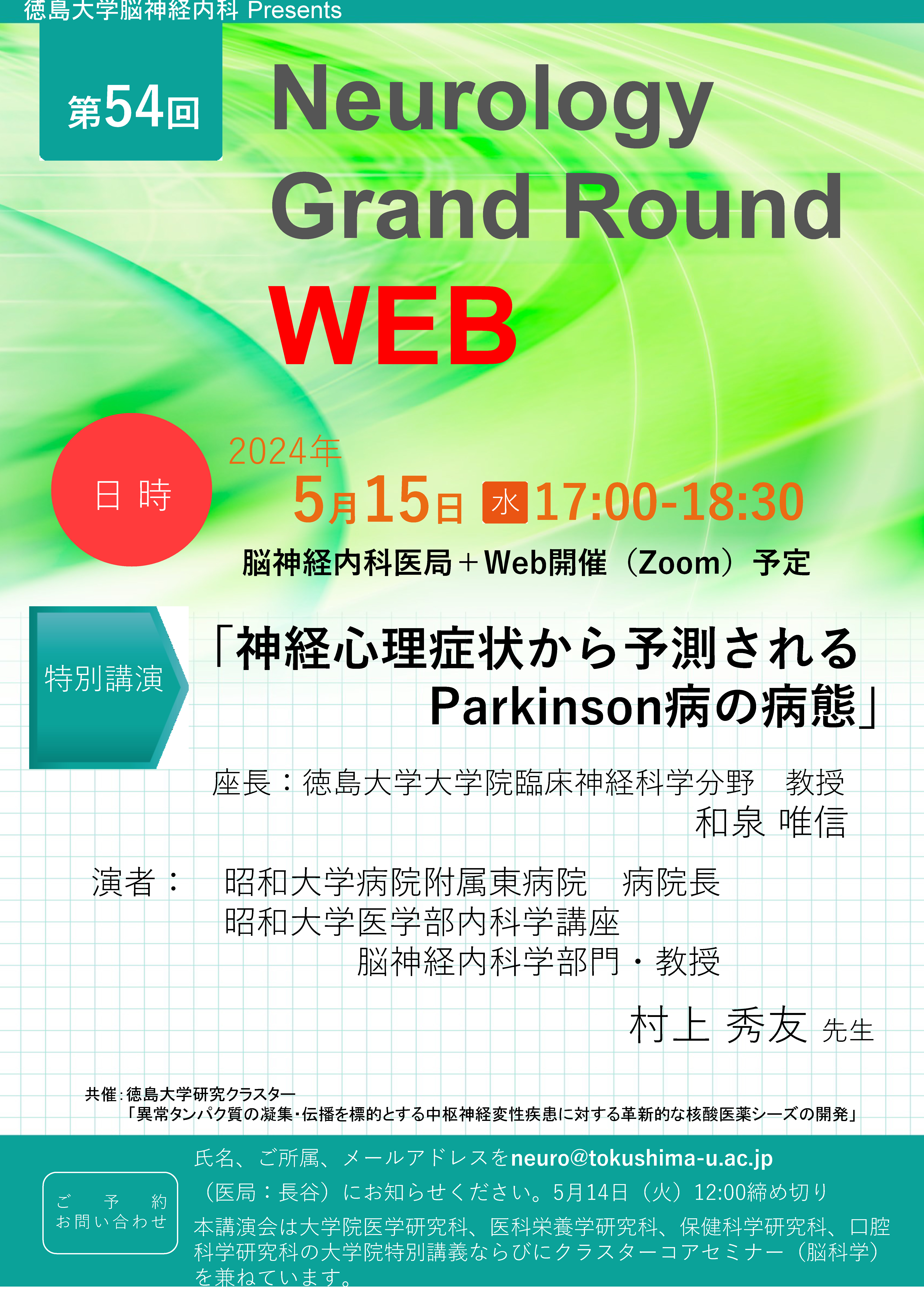 氏名、御所属、メールアドレスを neuro@tokushima-u.ac.jp (医局 長谷)にお知らせください。