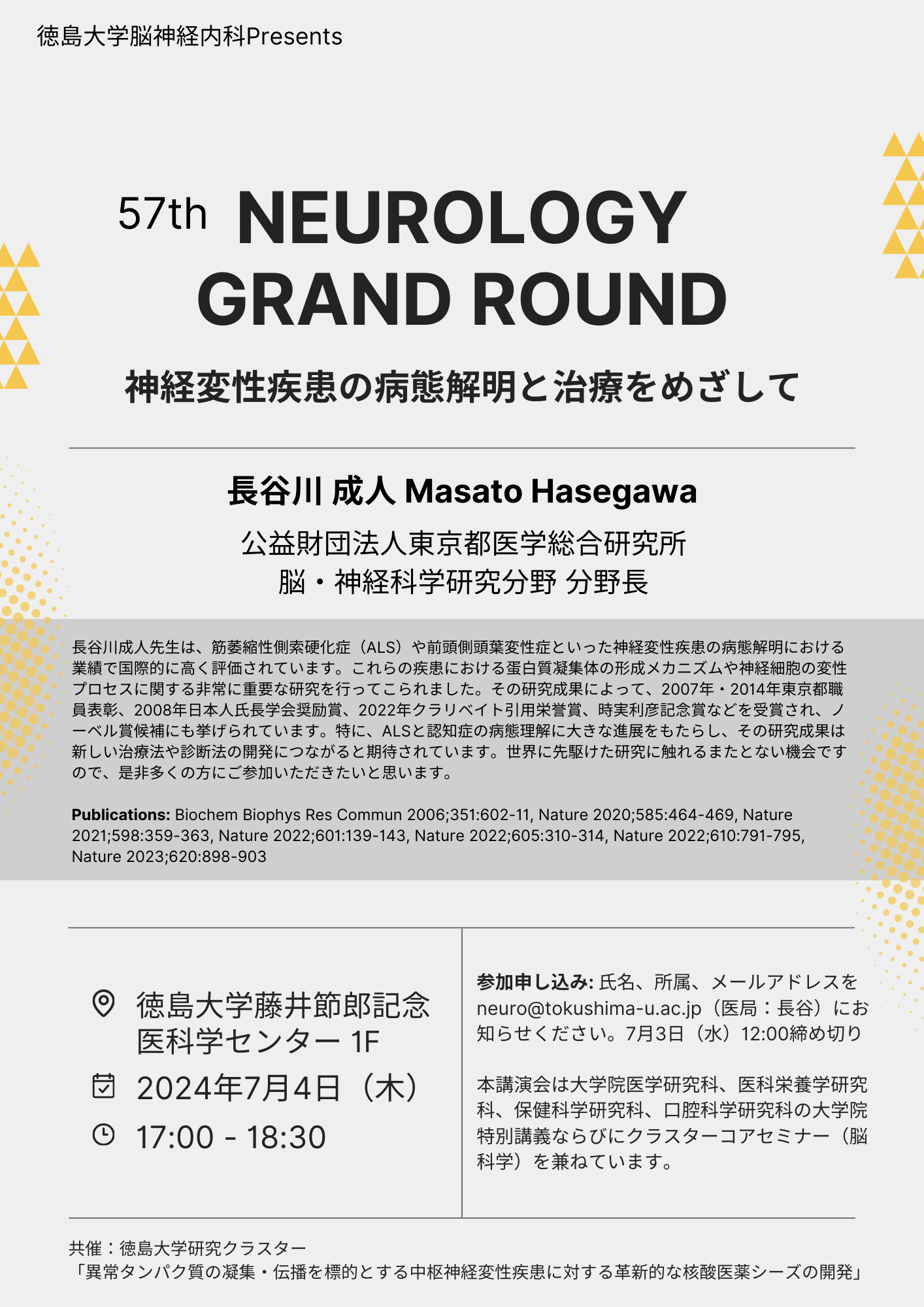 氏名、御所属、メールアドレスを neuro@tokushima-u.ac.jp (医局 長谷)にお知らせください。