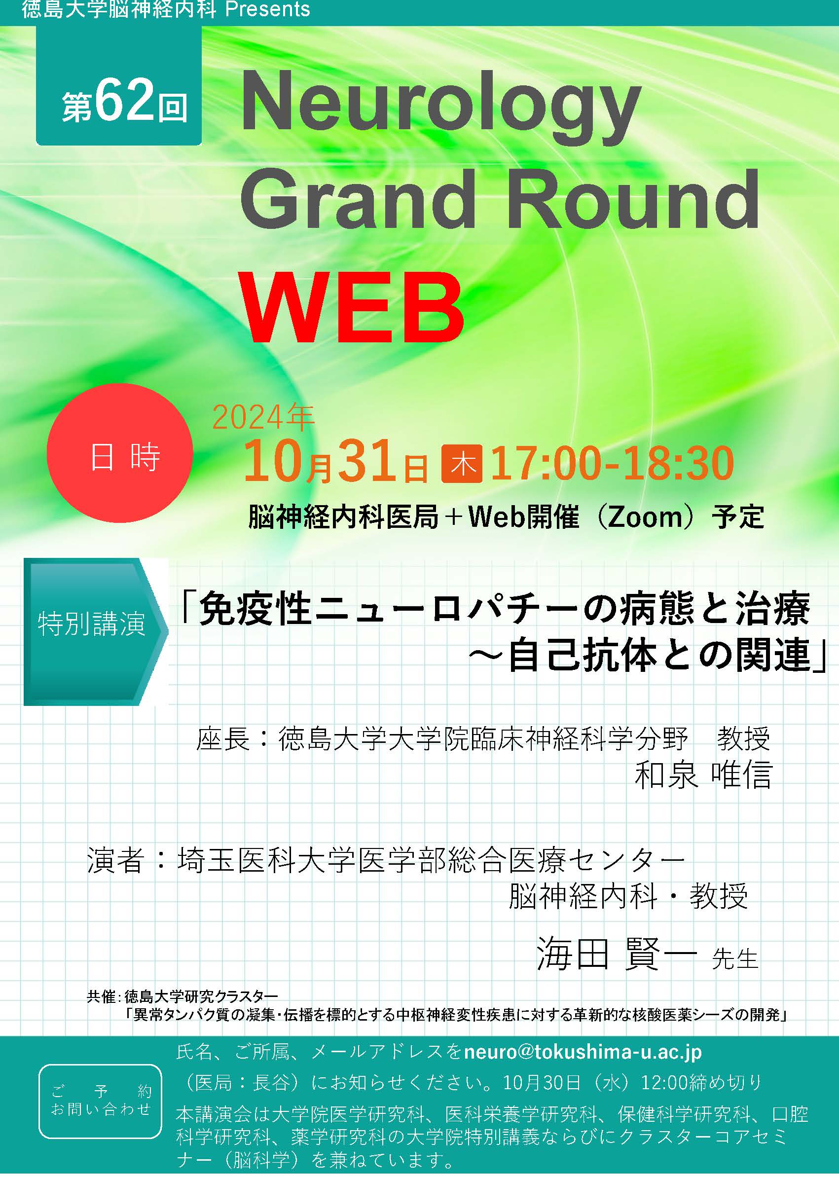氏名、御所属、メールアドレスを neuro@tokushima-u.ac.jp (医局 長谷)にお知らせください。