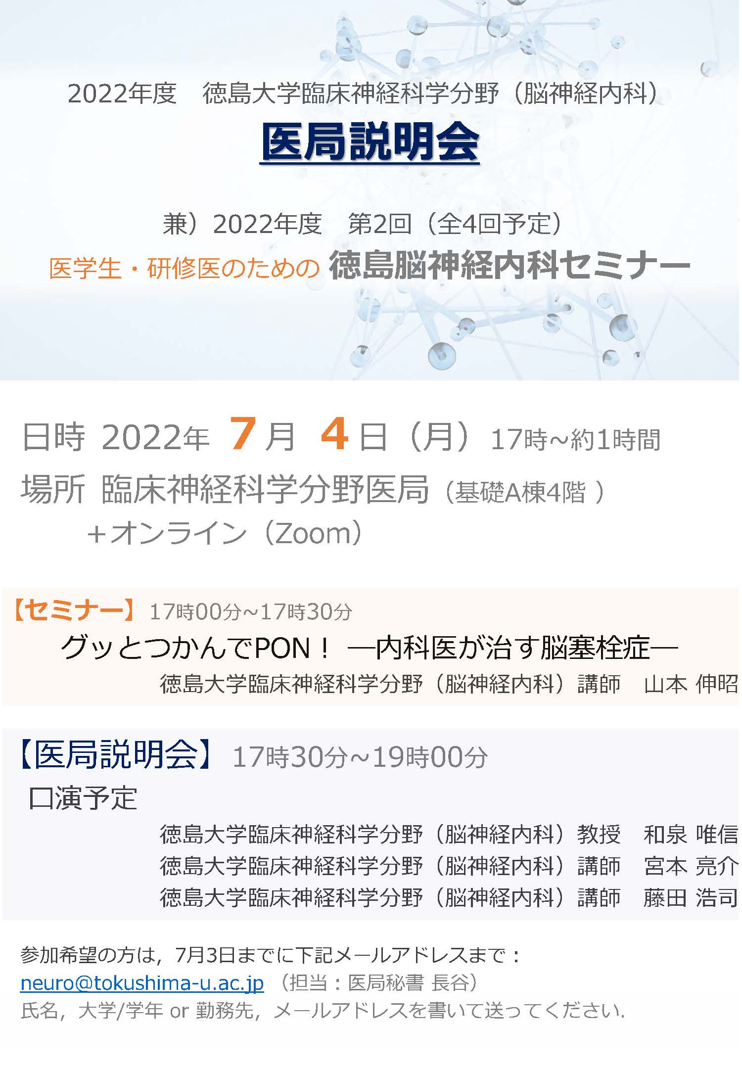 ■ 2022年度 第2回 医学生・研修生のための 徳島脳神経内科セミナー